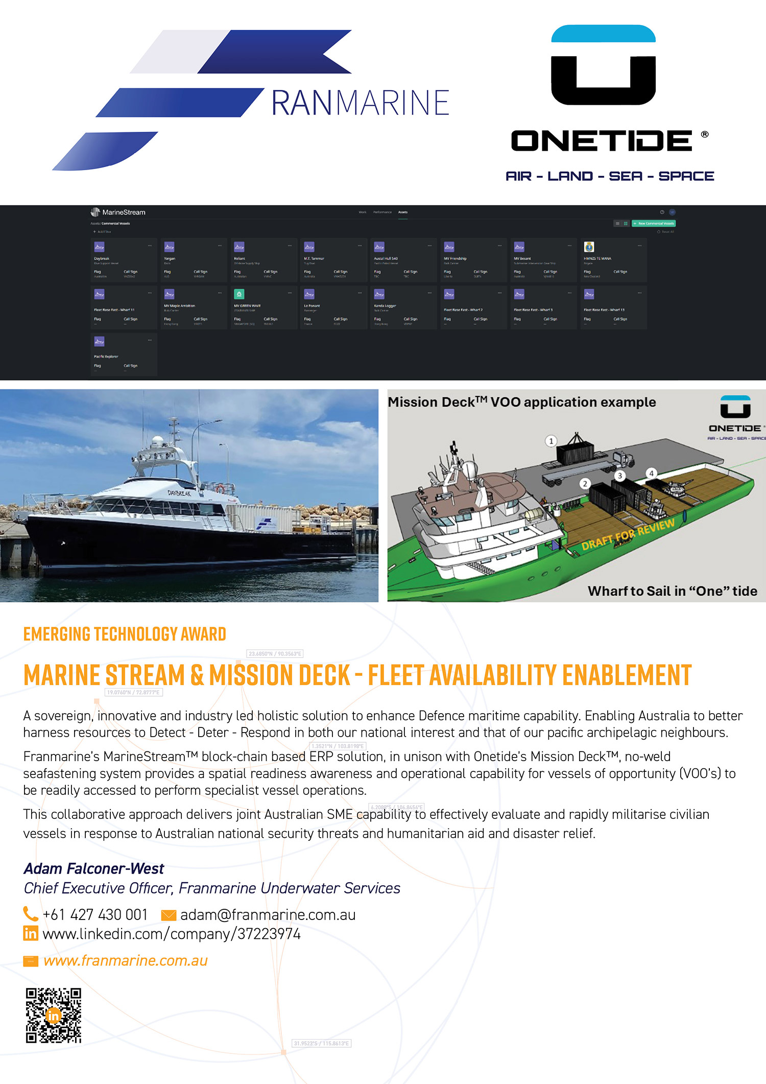 Award finalists pitch their ideas live at the Indian Ocean Defence & Security 2026 Conference and Exhibition in Perth, presenting to a global audience of defence professionals, industry leaders, investors and procurement decision-makers. Winners will be announced on site, with the awards designed to support the next stage of development—whether through personal growth, further education, or scaling innovation.